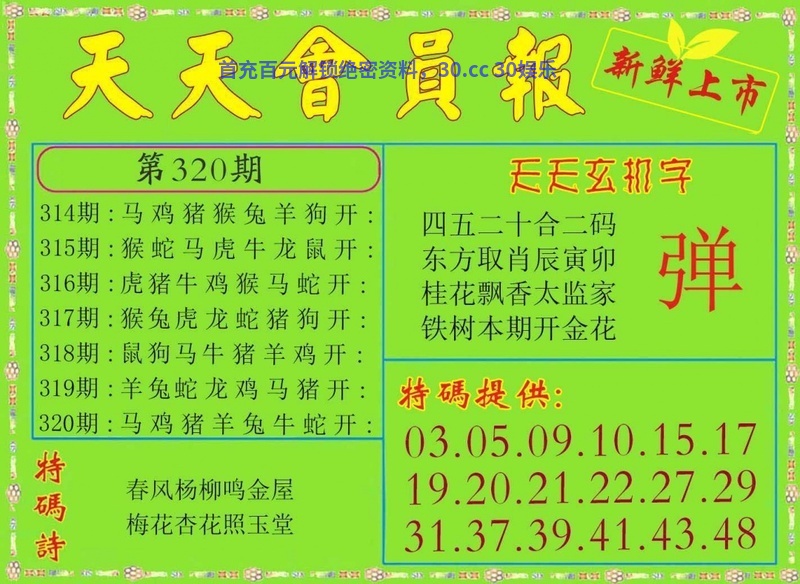 | 319期三肖 | 猪猴鸡 | 开:鸡45 |