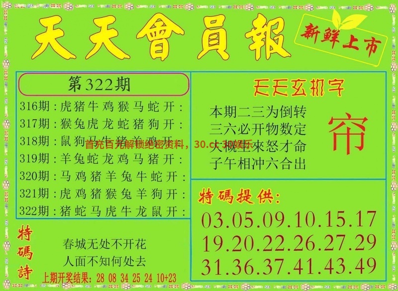 | 322期九码 | 10 31 26 03 36 17 09 47 08 | 开:羊47 |